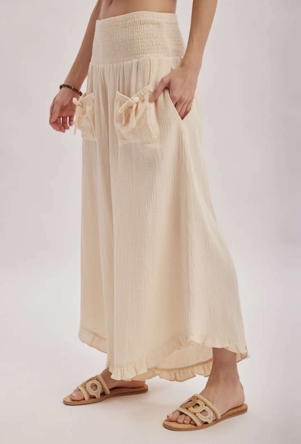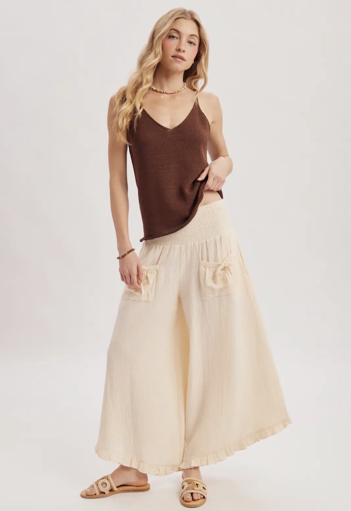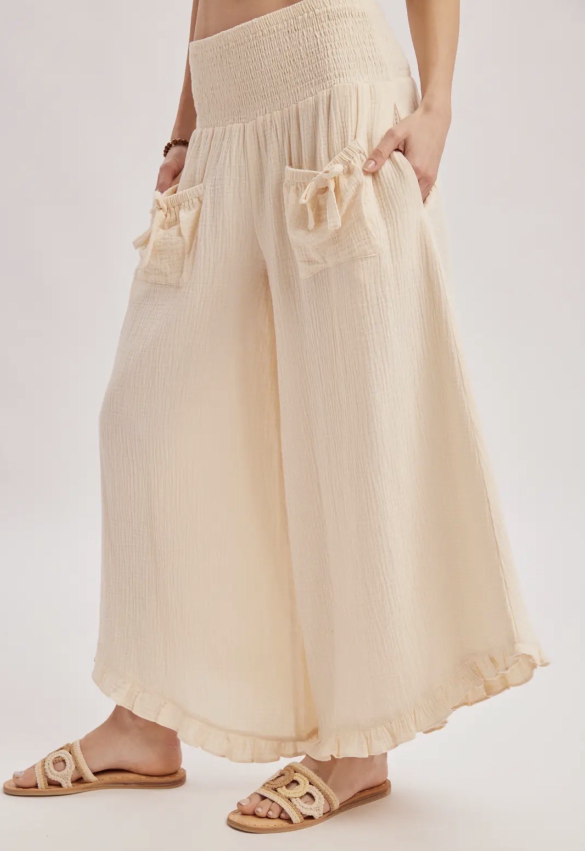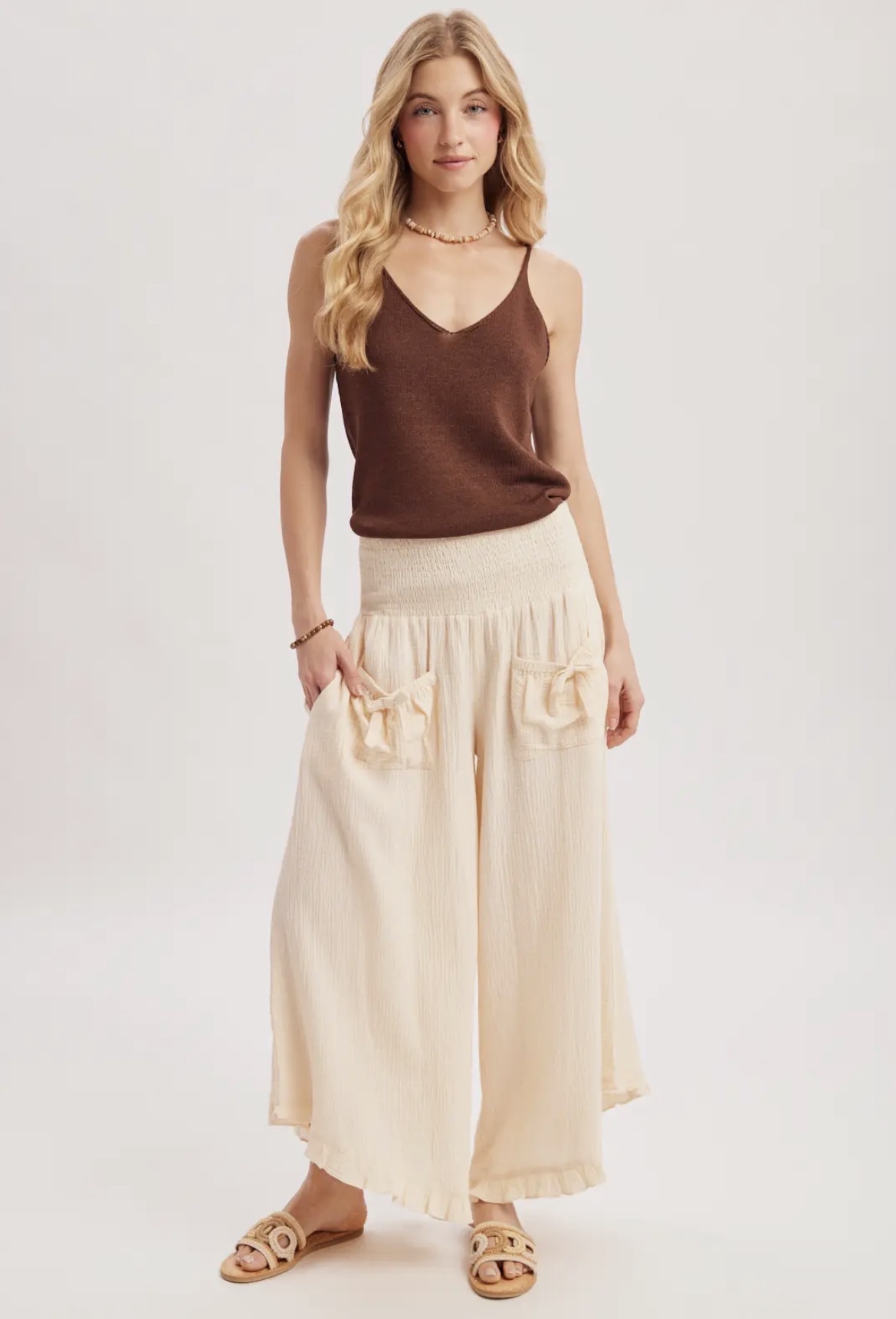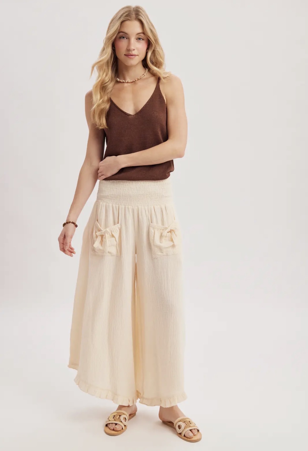 The Blissful Day Pants are designed with soft fabric and a comfortable fit, offering a stylish look perfect for a relaxing day at the beach or brunch with the girls