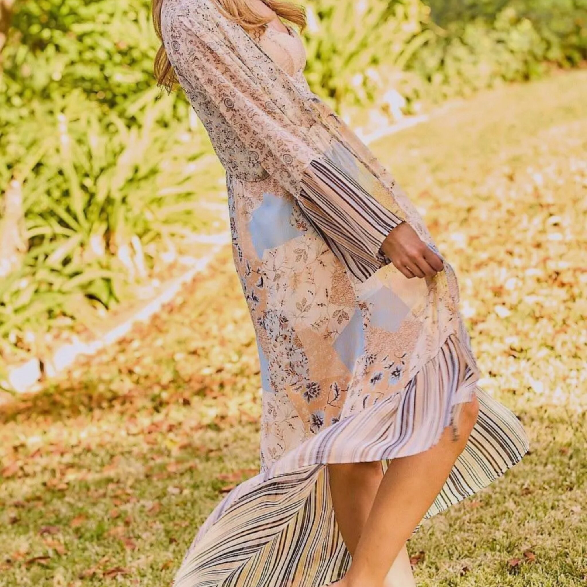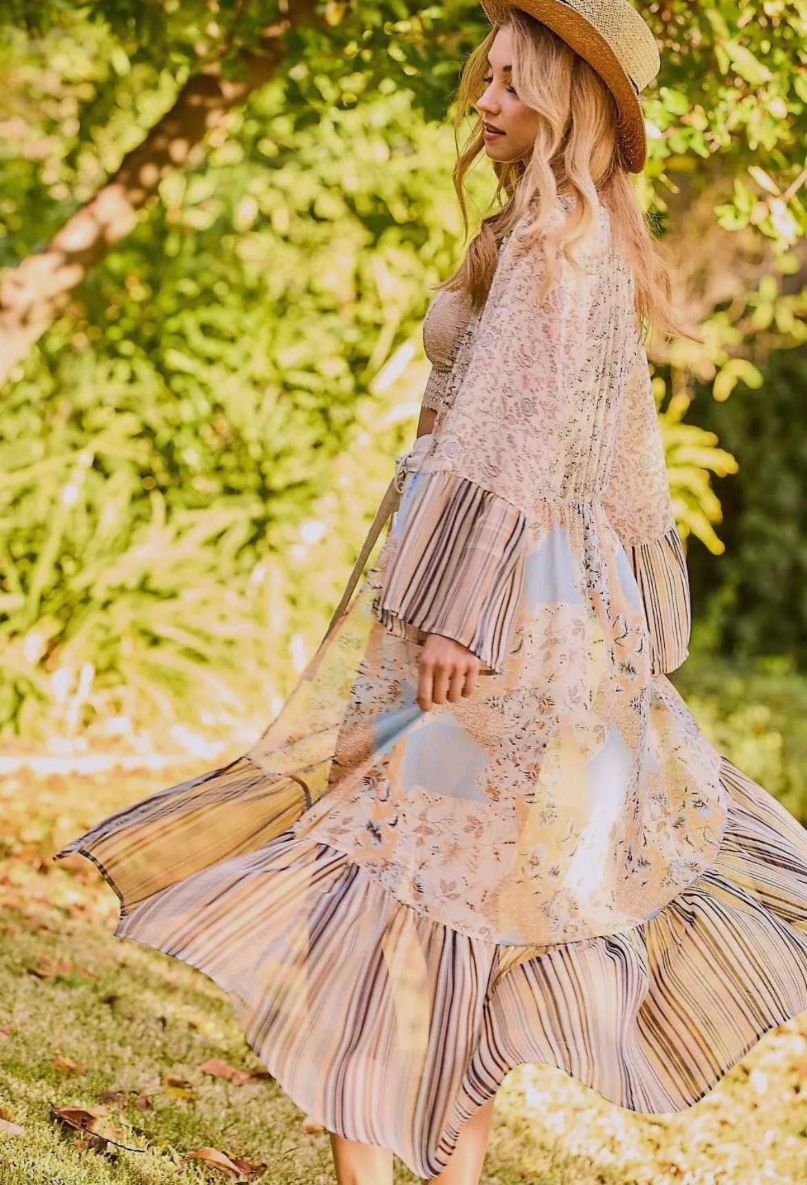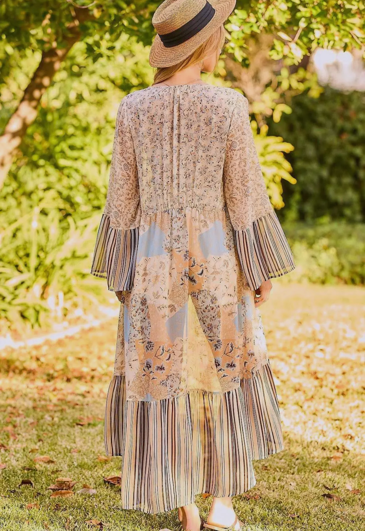 Embrace boho vibes with the Day Trip Kimono, featuring a patchwork design and stylish patterns. Made from lightweight fabric, it's perfect for layering on casual outings or beach days.