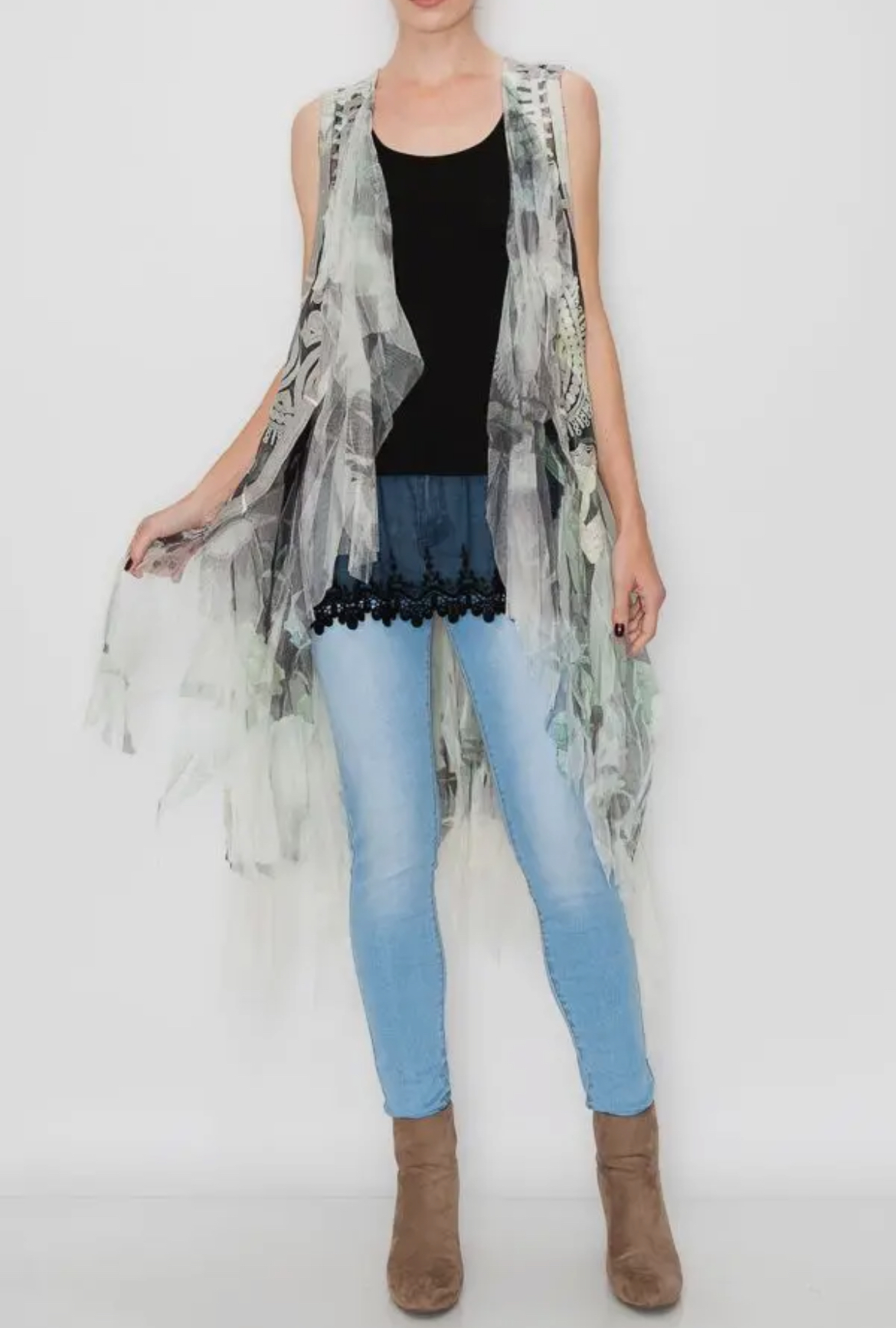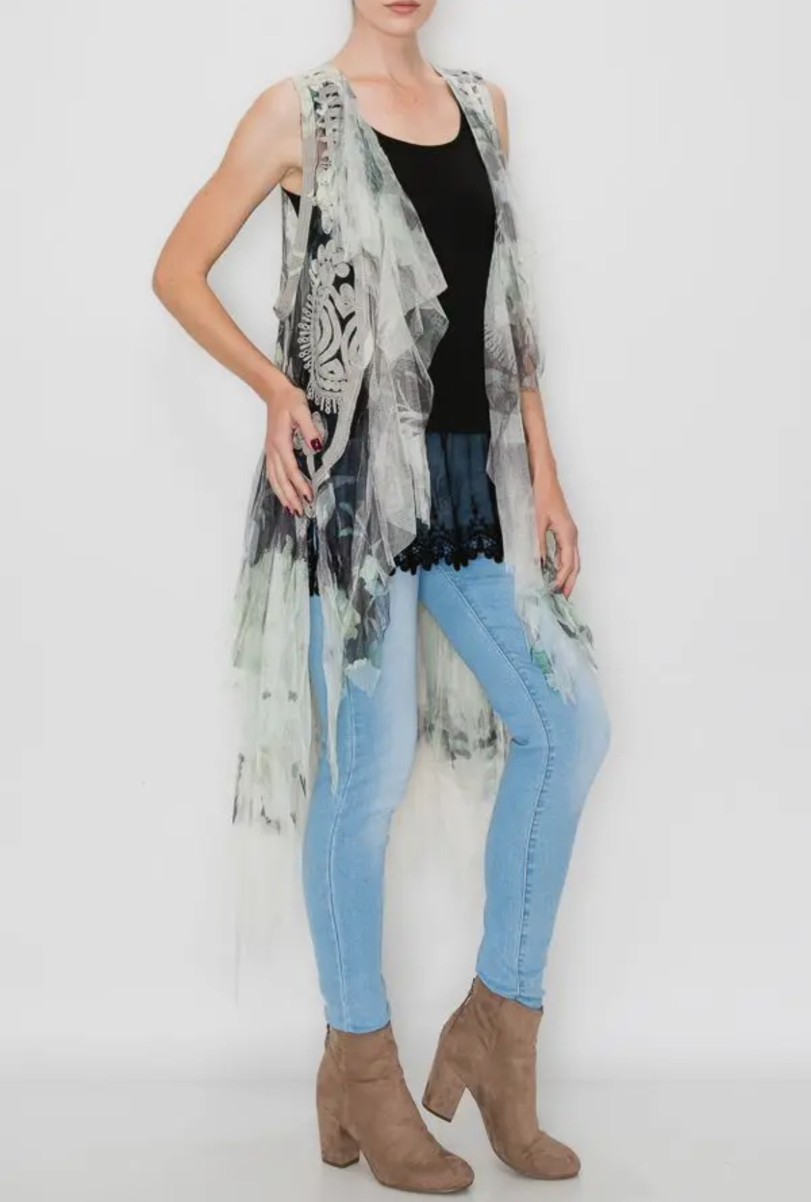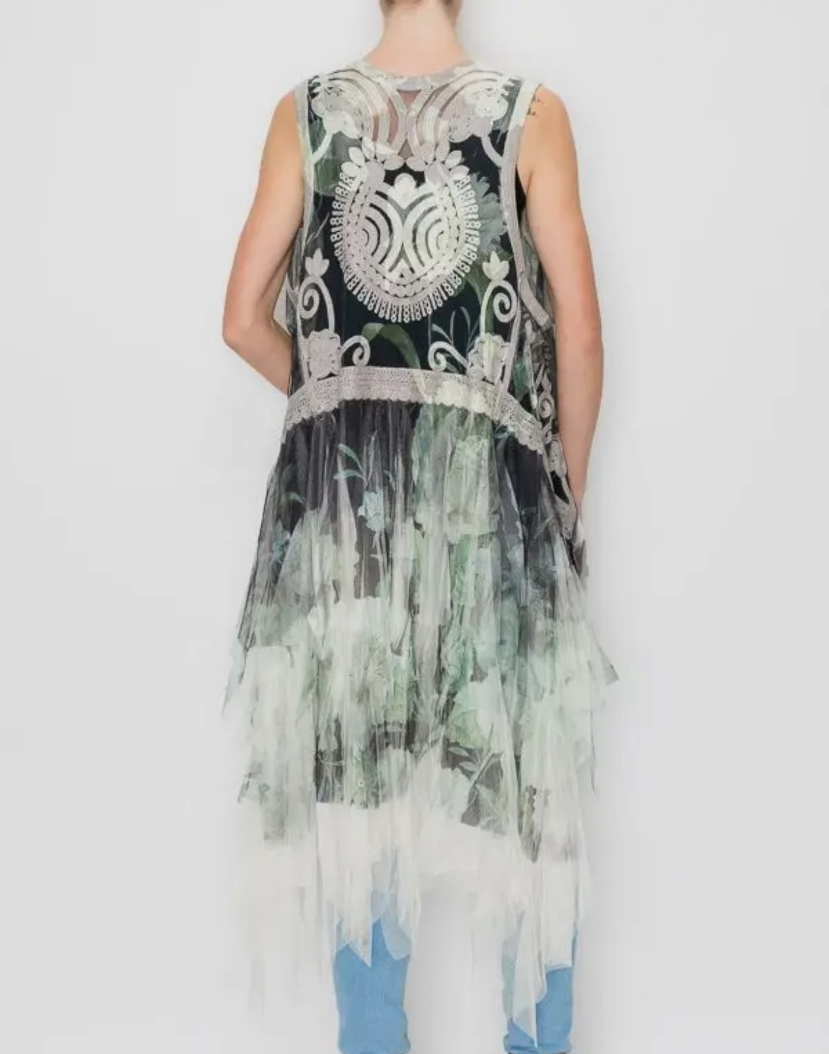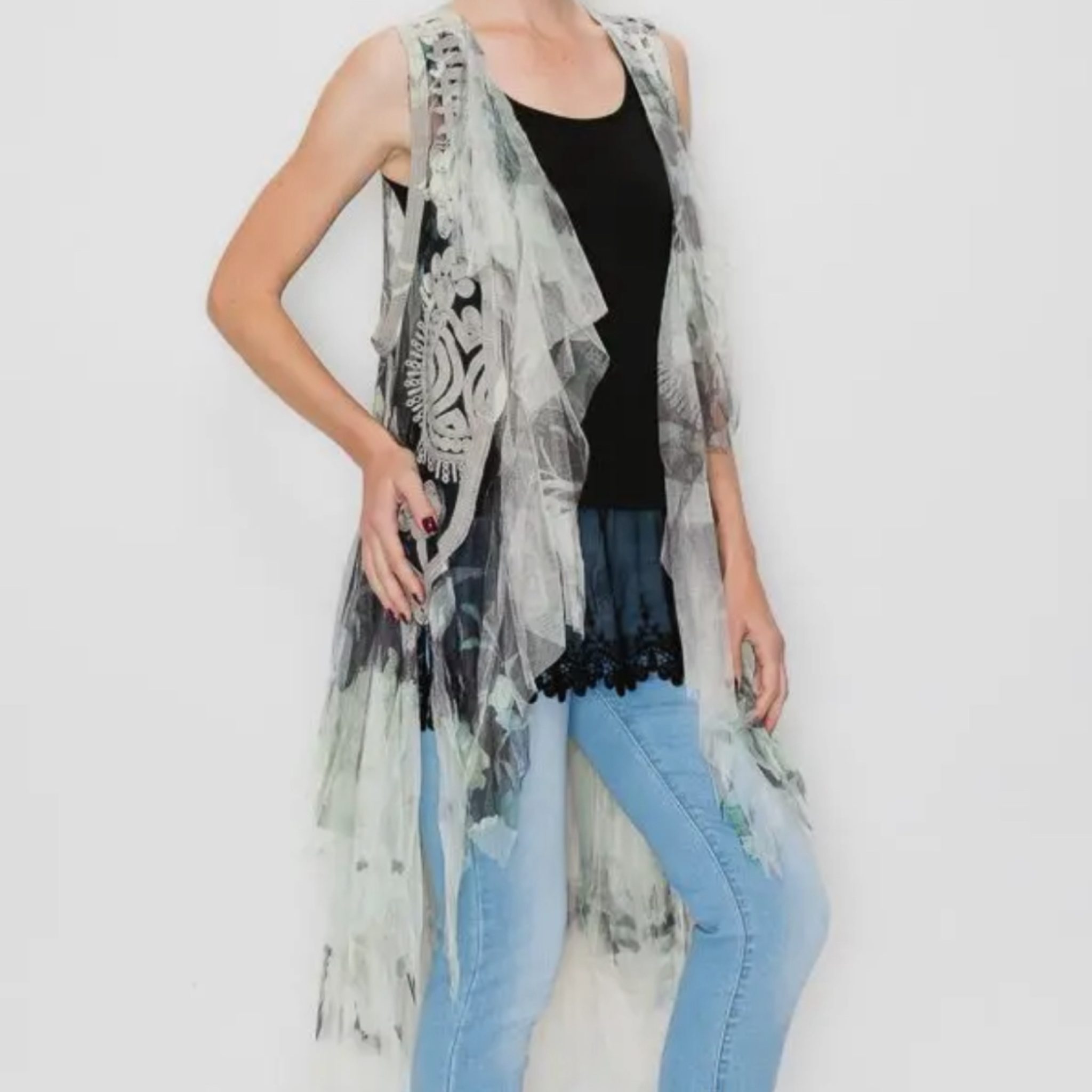 The Emerald City Duster showcases flowing layered fabric design, offering timeless elegance for any occasion. Perfect for layering, it seamlessly enhances both casual and formal outfits.