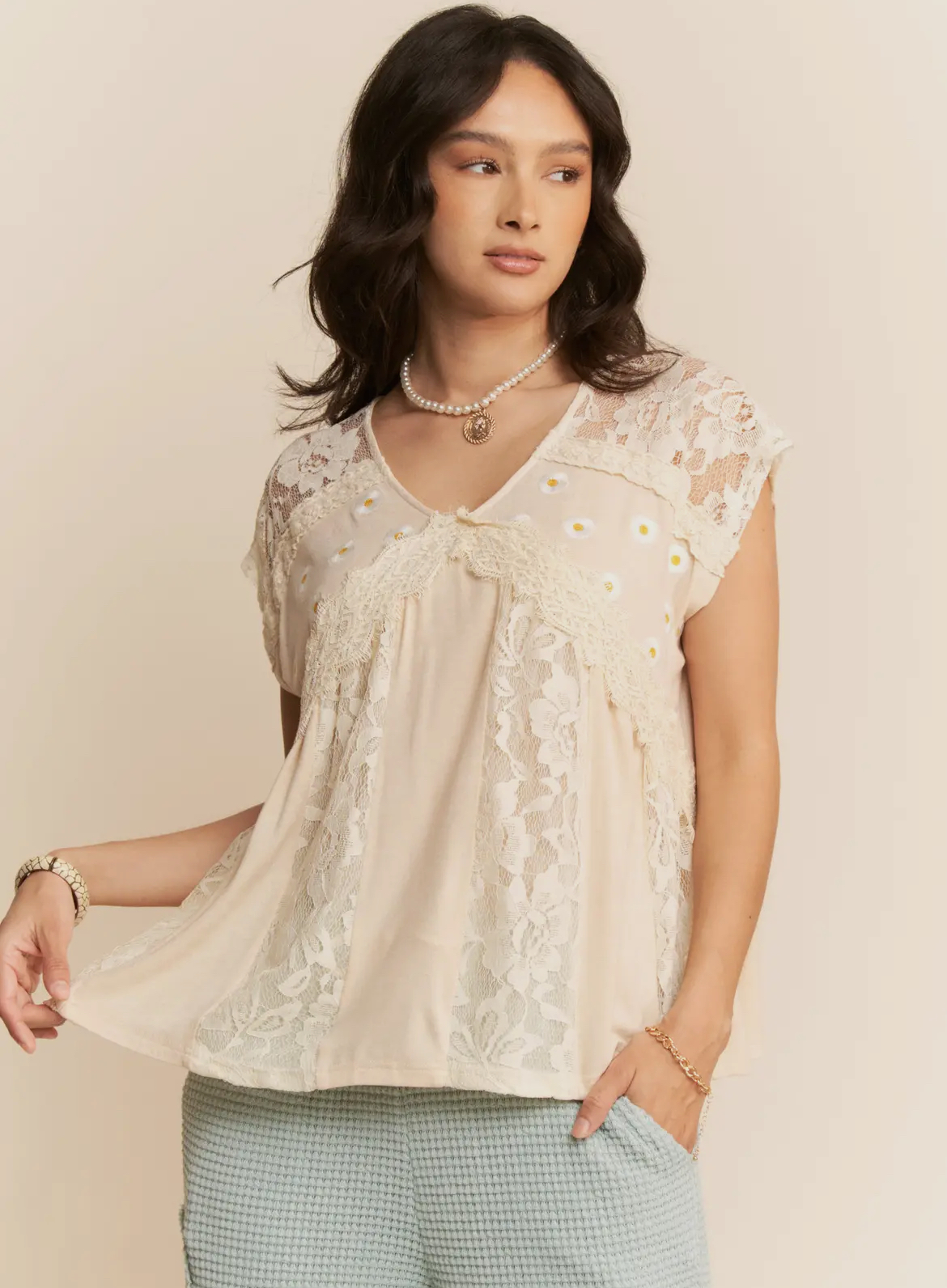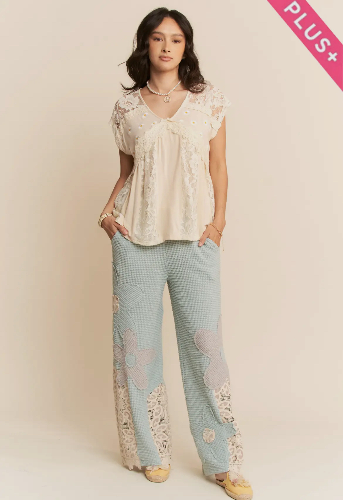 The Glitzy Daisy Top – Plus features a sparkling glitter design and a flattering fit that enhances your silhouette. Its versatile style makes it perfect for both casual outings and special occasions.