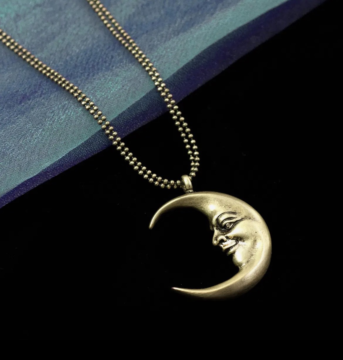The Man in the Moon Necklace features a luminous celestial design, perfect for adding a touch of elegance to any outfit. Inspired by the beauty of the night sky, it’s an ideal accessory for day or evening wear.