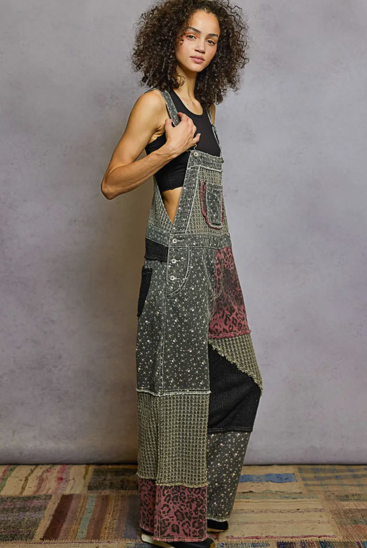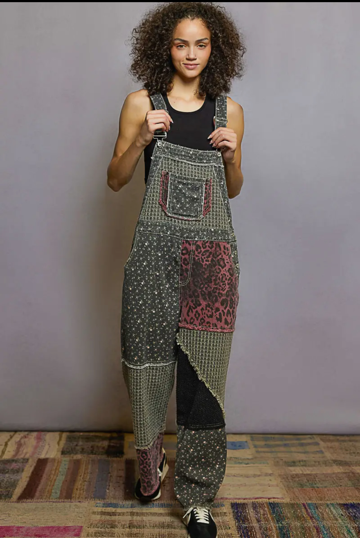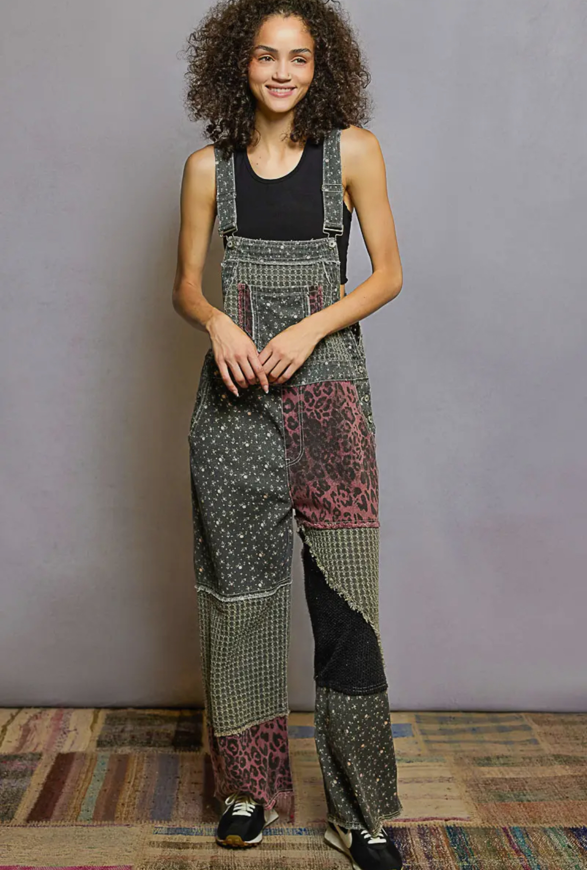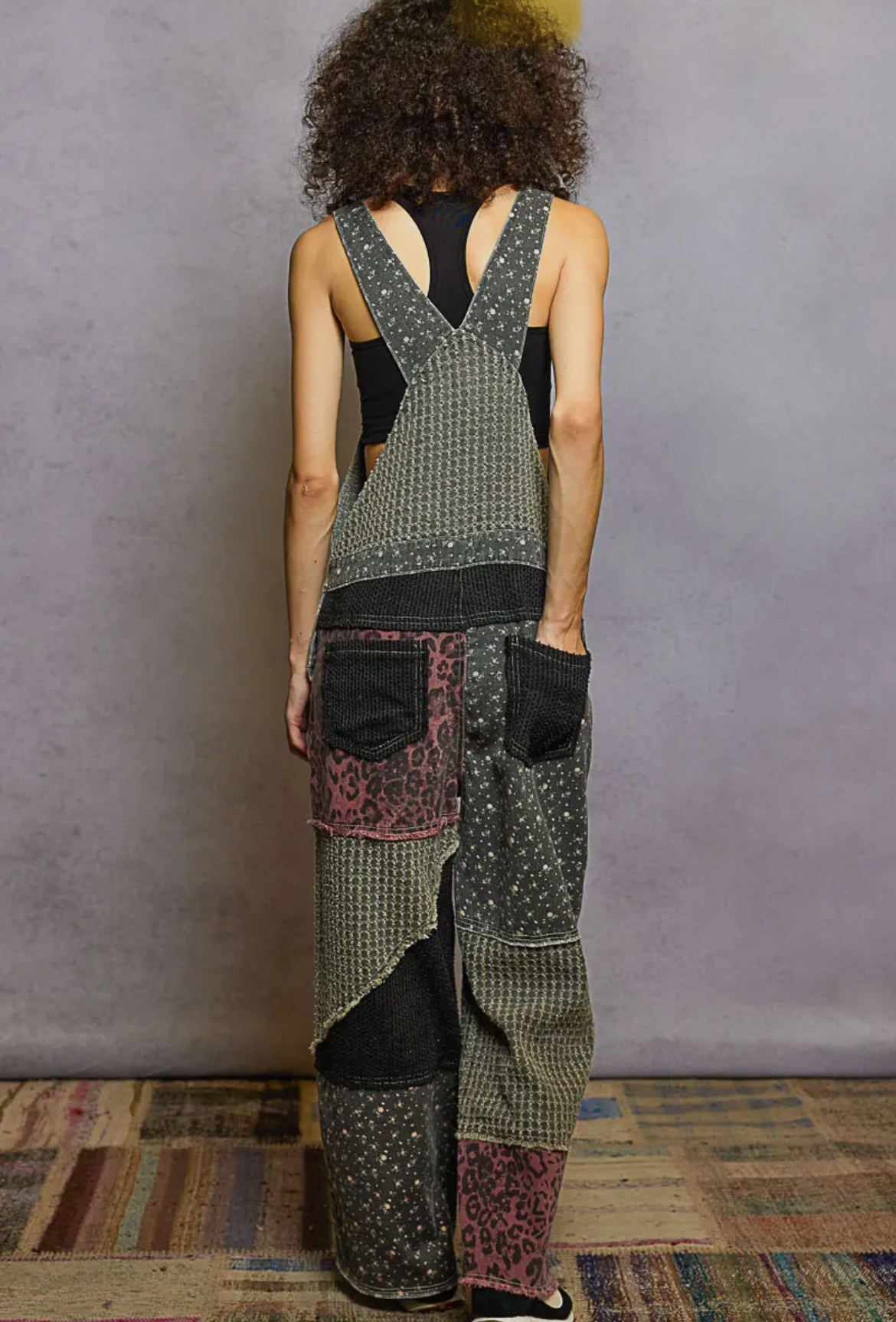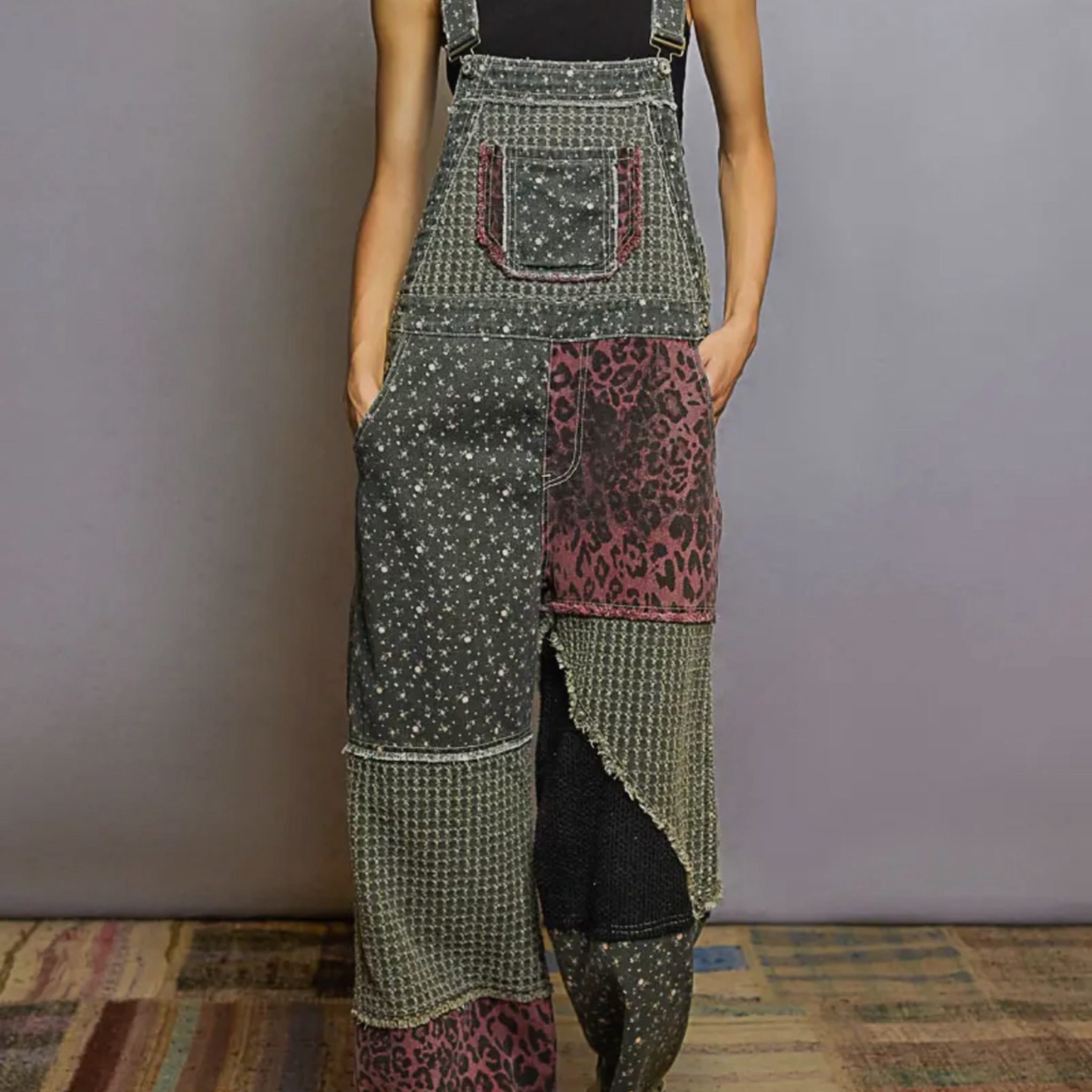 The Midnight Muse Overalls feature a unique patchwork design, offering versatile style and a comfortable fit. Crafted from high-quality materials, they are perfect for everyday wear or standout looks.