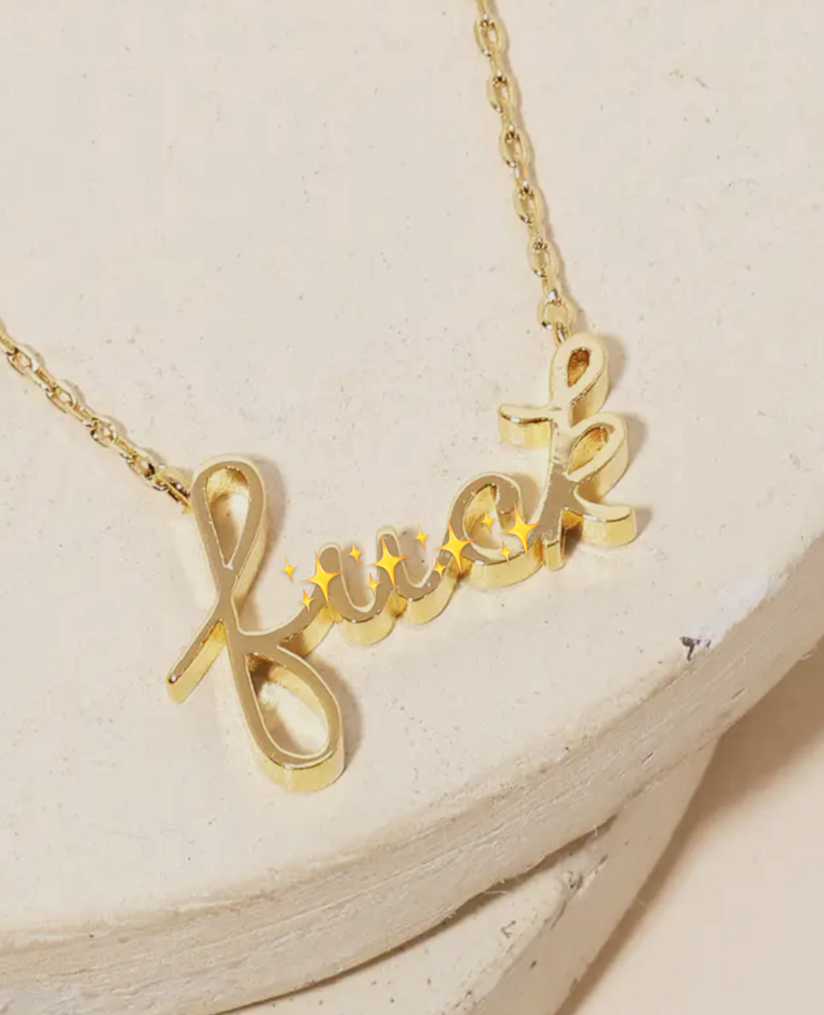 Our Obscenities Necklace is the perfect gift for that special someone with a quirky sense of humor and a fun personality. Available in gold or silver finishes. The word is spelled out (the hearts are emojis for the purposes of keeping the website family friendly)