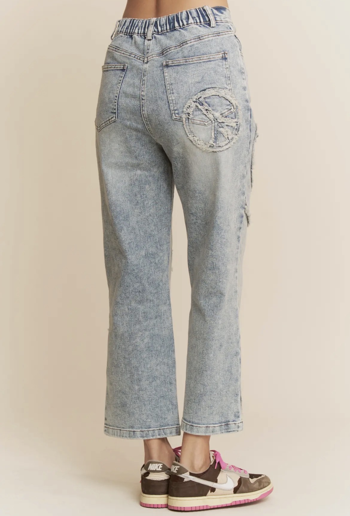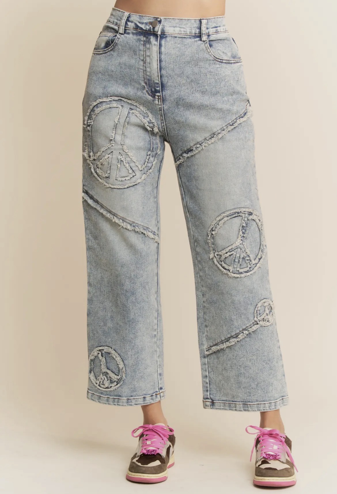 The In Peaceful Pants are crafted from soft denim, offering a comfortable fit with a stylish design. Versatile for any occasion, these pants combine practicality with modern appeal.